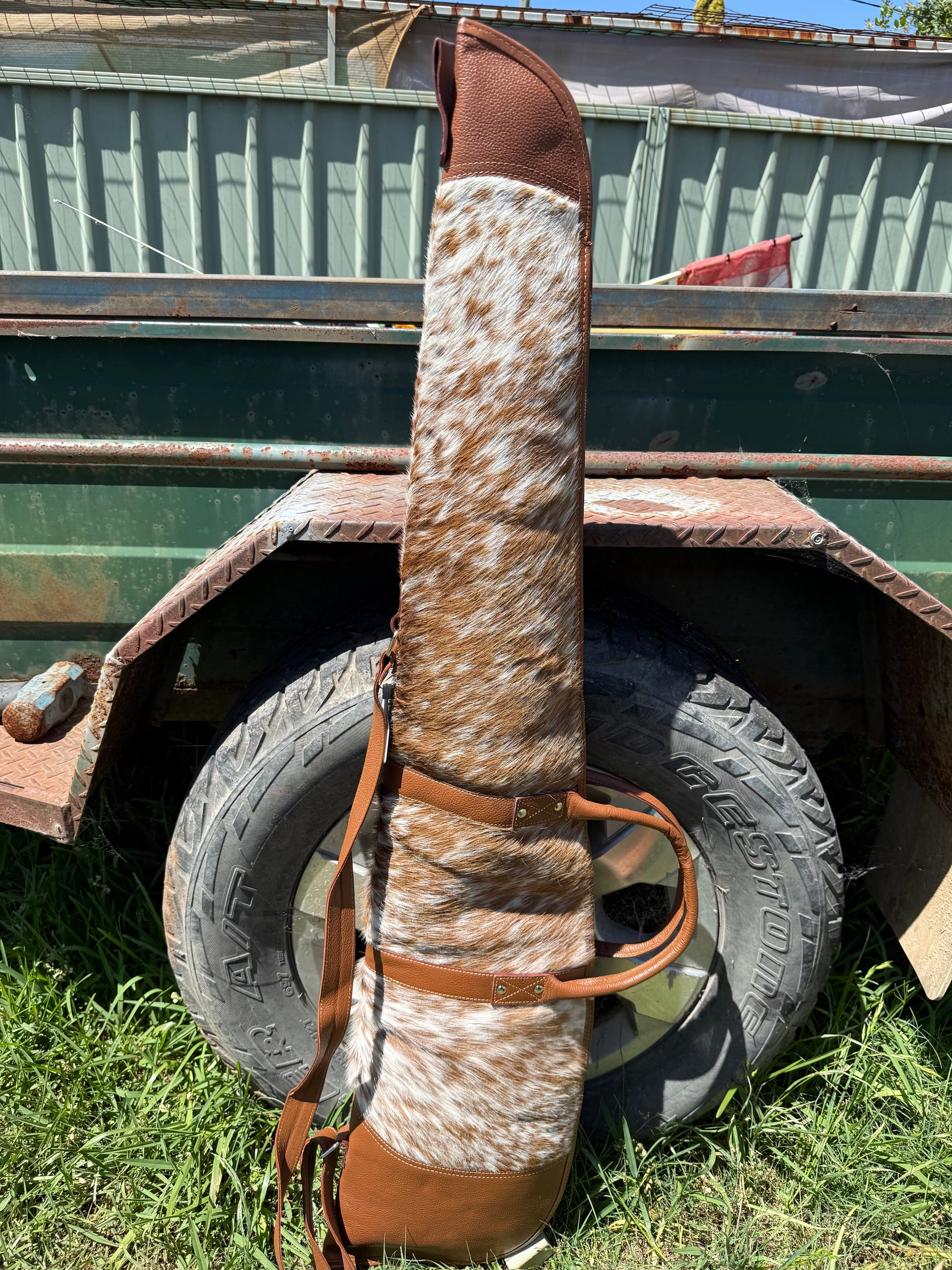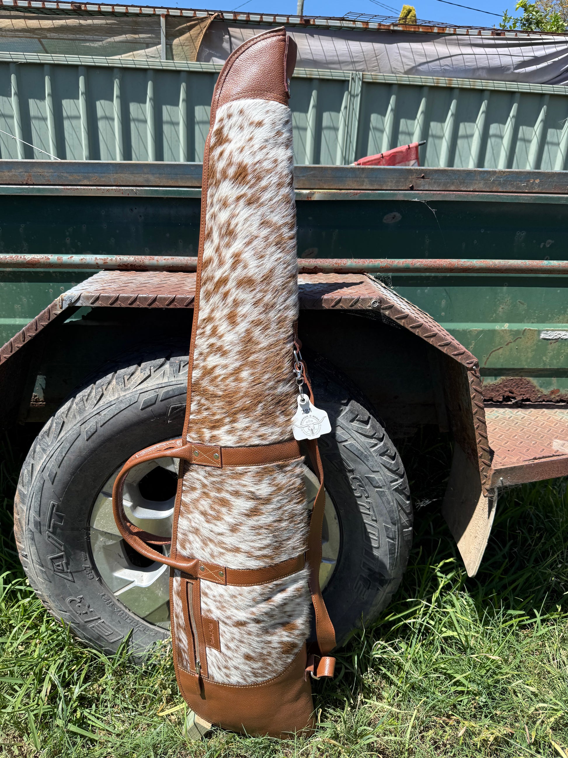 The perfect way to carry your hunting gear: the "Hunter" Rifle Bag! Made of genuine cowhide leather, this is a stylish rifle bag that won't let you down when you're out and about in the great outdoors. Keep your rifle safe, secure, and looking good!