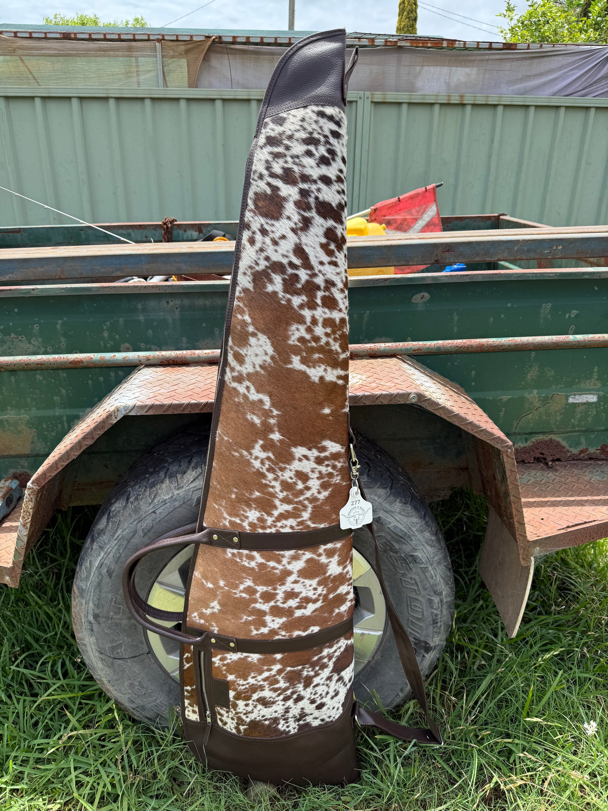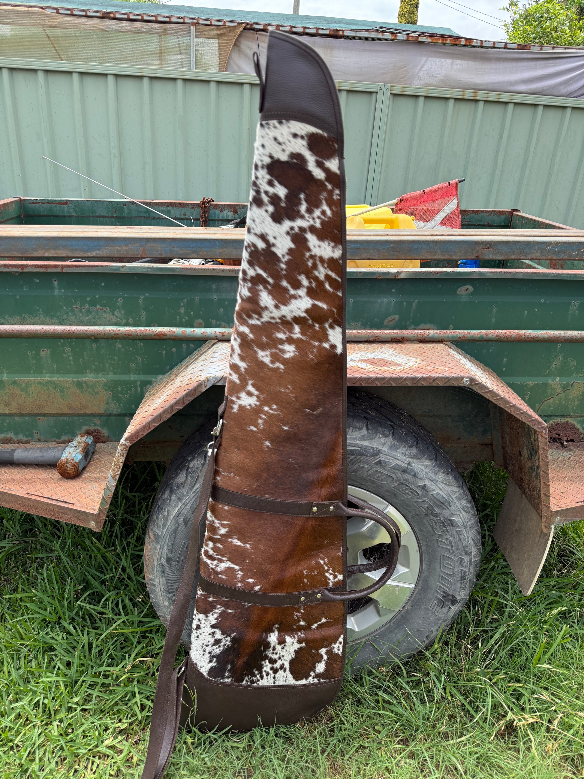 The perfect way to carry your hunting gear: the "Hunter" Rifle Bag! Made of genuine cowhide leather, this is a stylish rifle bag that won't let you down when you're out and about in the great outdoors. Keep your rifle safe, secure, and looking good!
