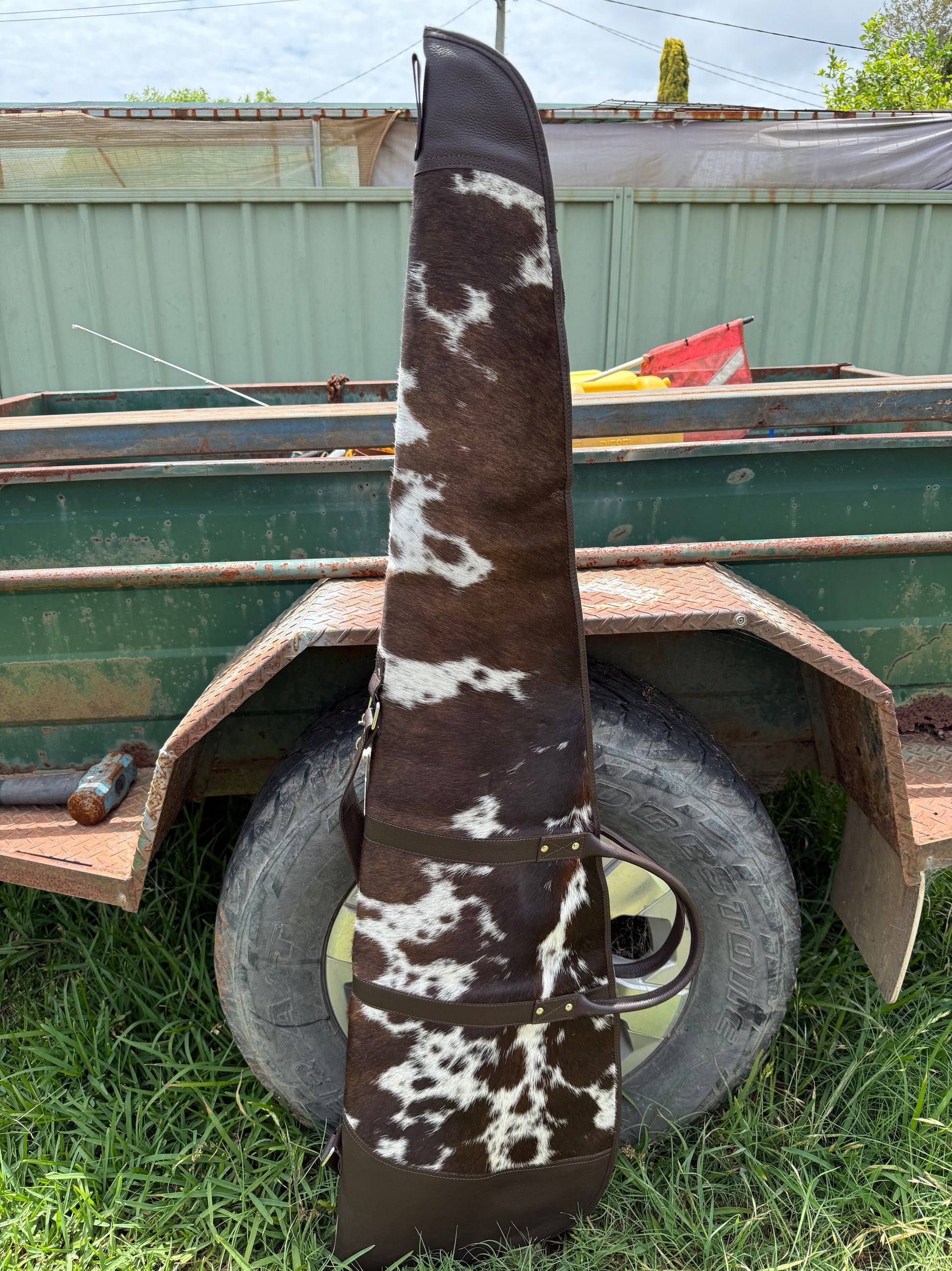 The perfect way to carry your hunting gear: the "Hunter" Rifle Bag! Made of genuine cowhide leather, this is a stylish rifle bag that won't let you down when you're out and about in the great outdoors. Keep your rifle safe, secure, and looking good!