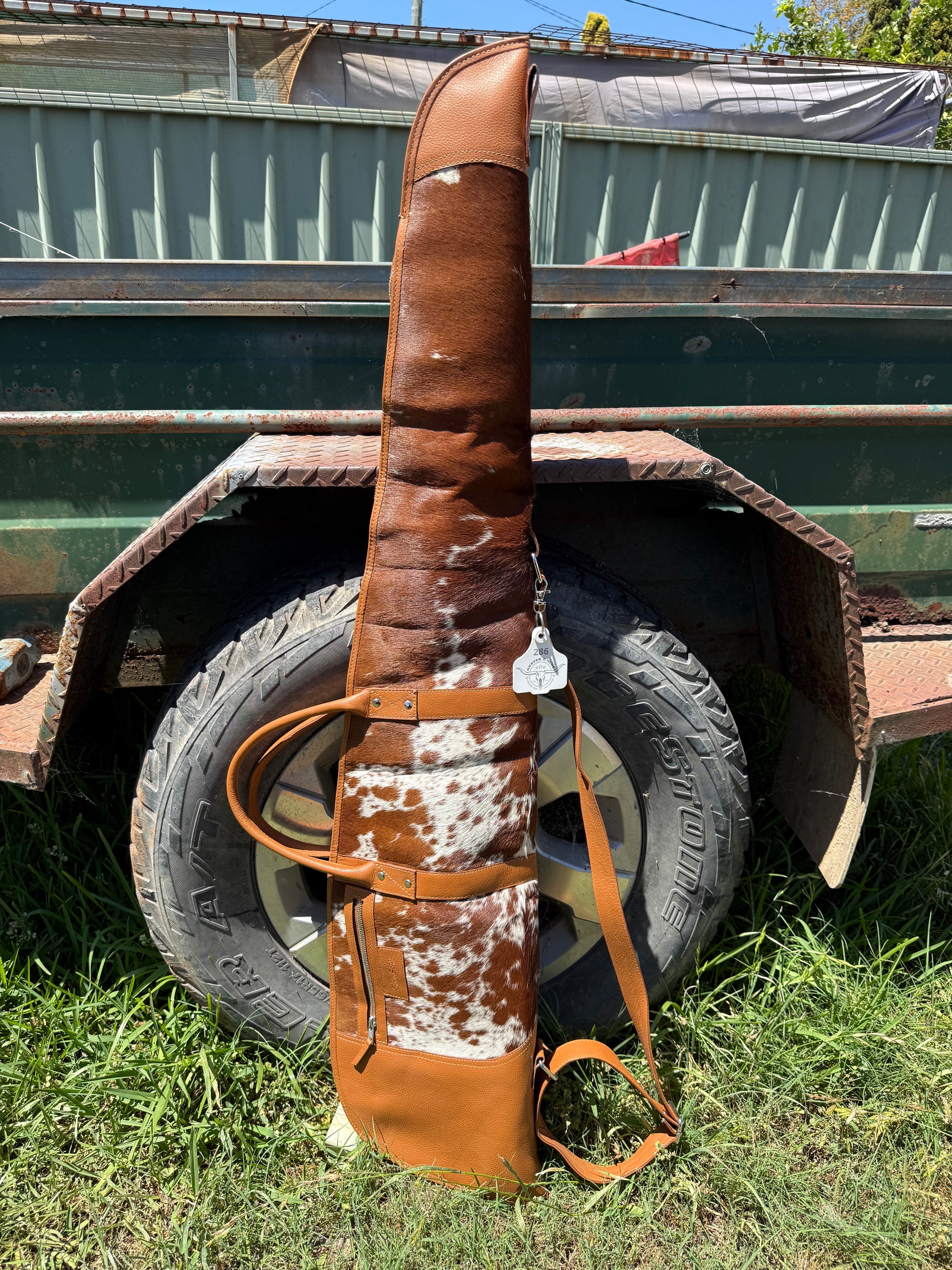 The perfect way to carry your hunting gear: the "Hunter" Rifle Bag! Made of genuine cowhide leather, this is a stylish rifle bag that won't let you down when you're out and about in the great outdoors. Keep your rifle safe, secure, and looking good!