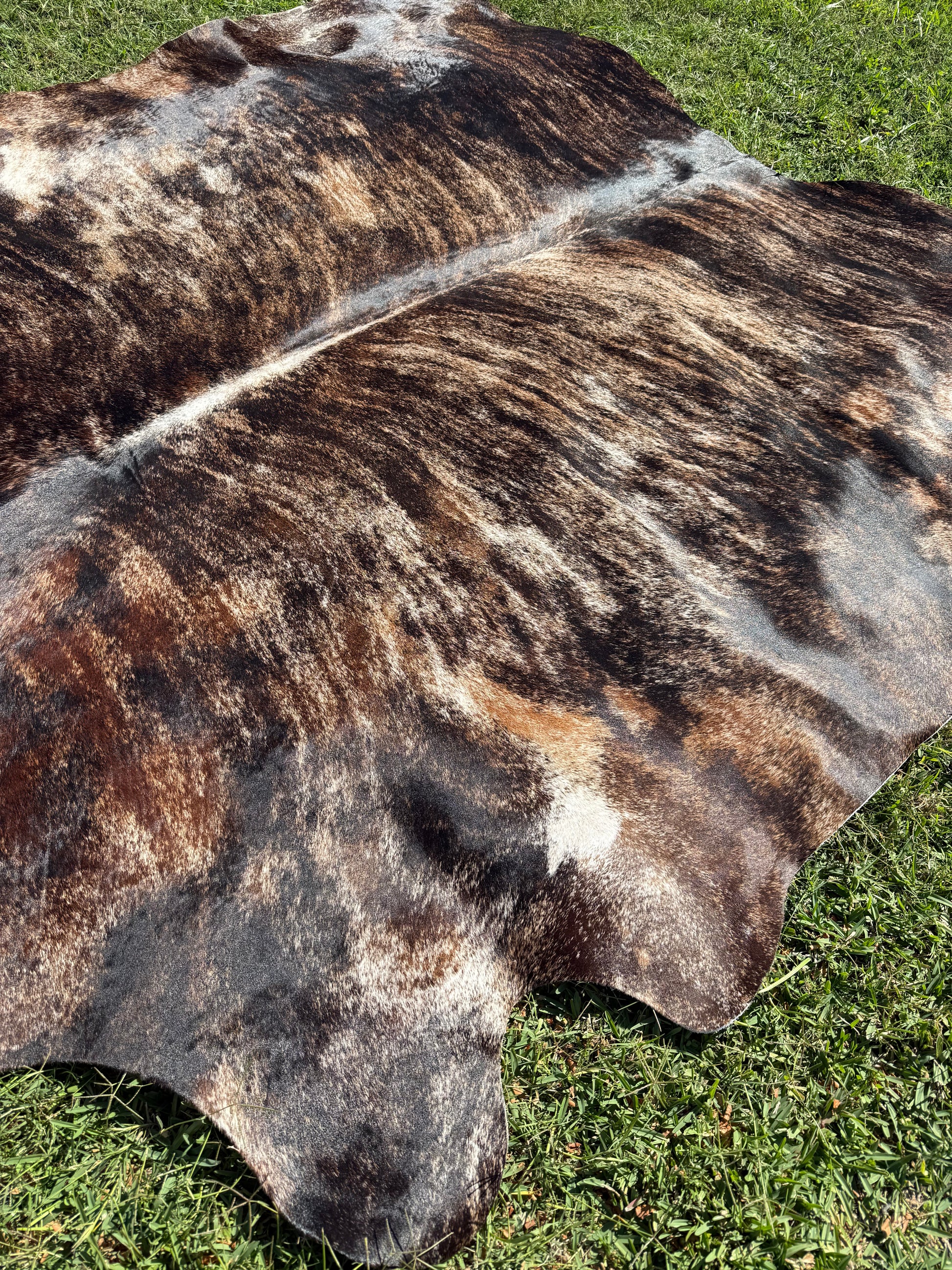 Cowhide rugs are easily cleaned by vacuuming or shaking it out. You can also use a damp cloth if something is spilt on it.