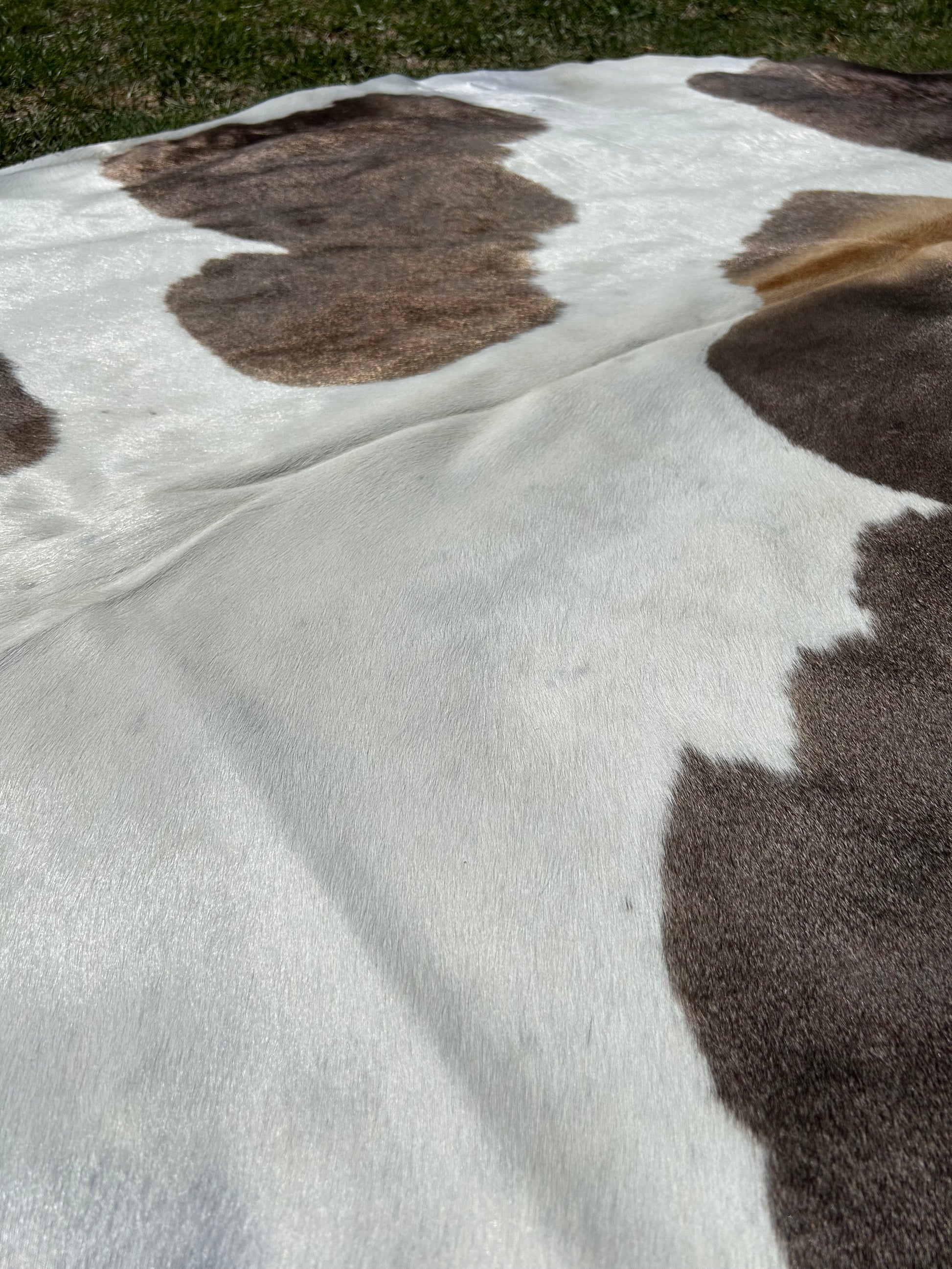 Cowhide rugs are easily cleaned by vacuuming or shaking it out. You can also use a damp cloth if something is spilt on it.