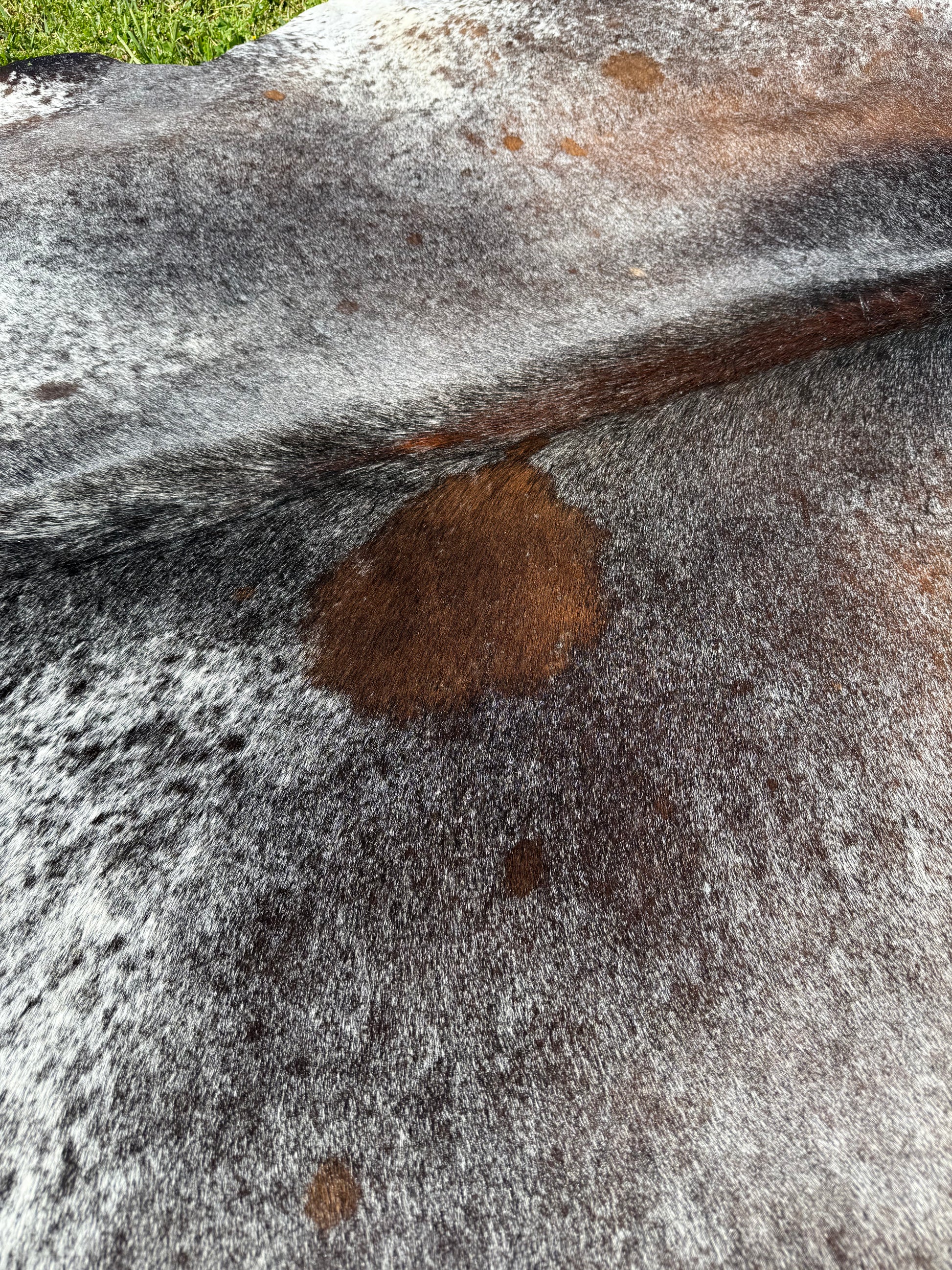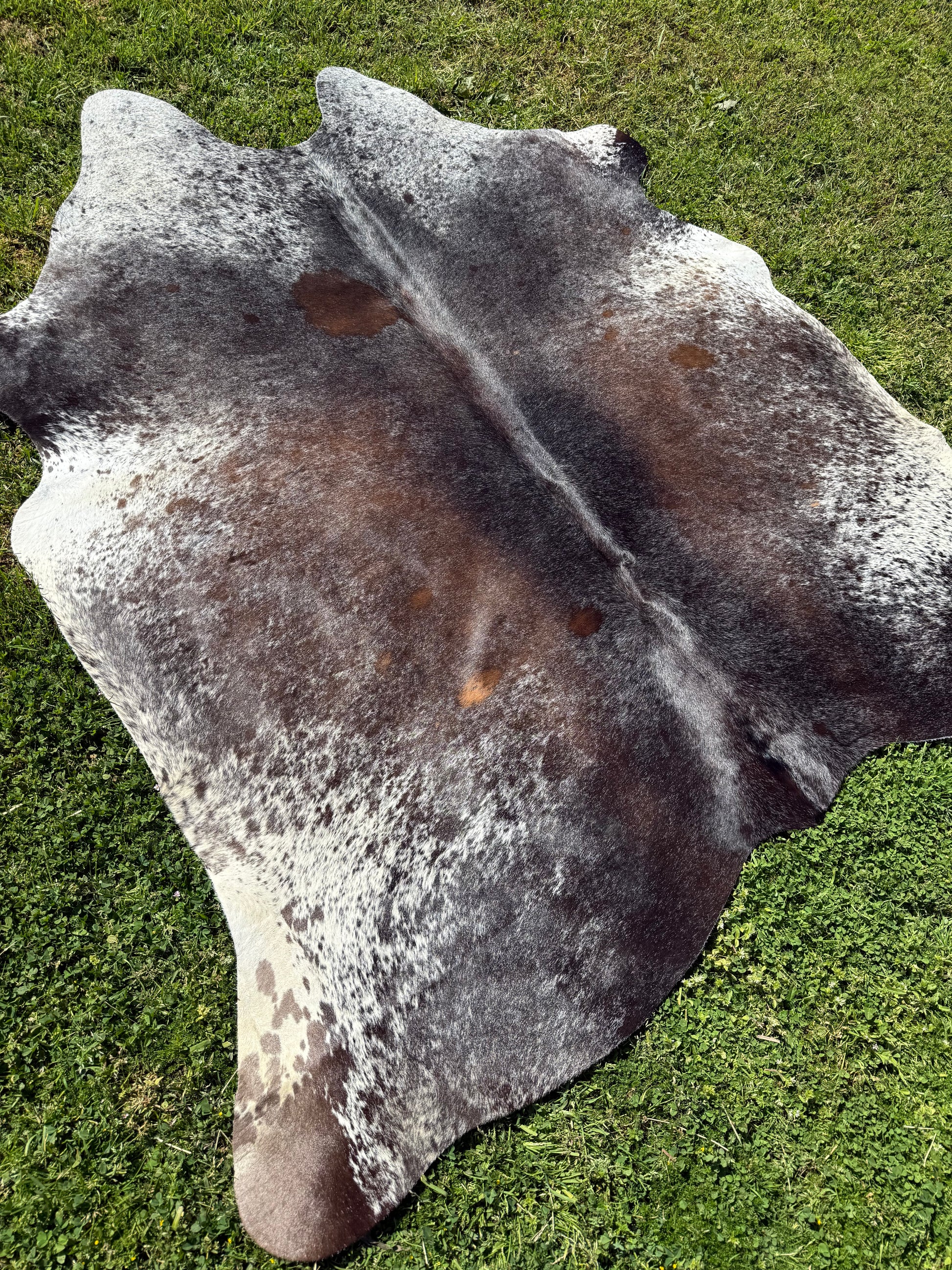 Cowhide rugs are easily cleaned by vacuuming or shaking it out. You can also use a damp cloth if something is spilt on it.