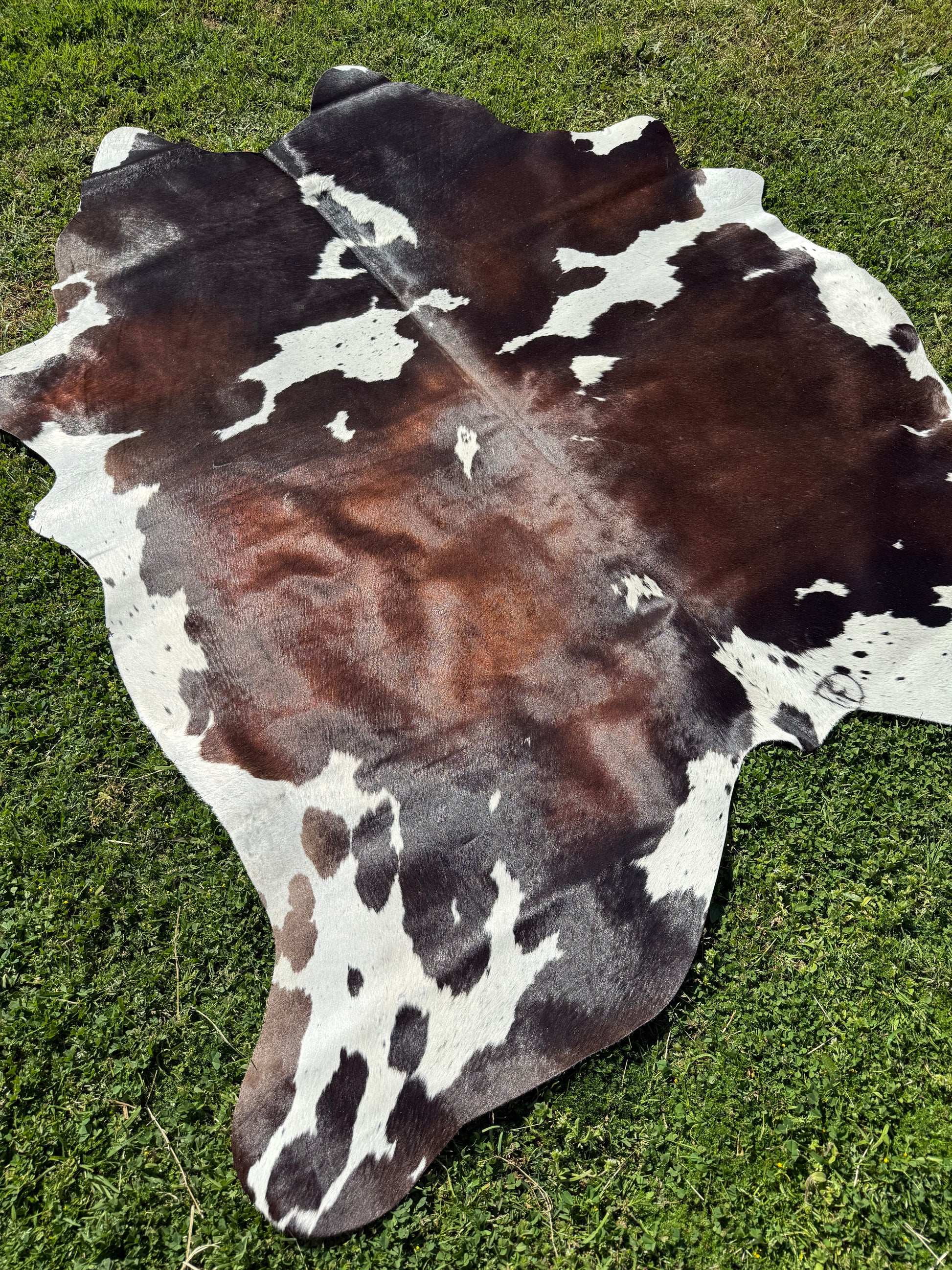 Cowhide rugs are easily cleaned by vacuuming or shaking it out. You can also use a damp cloth if something is spilt on it.