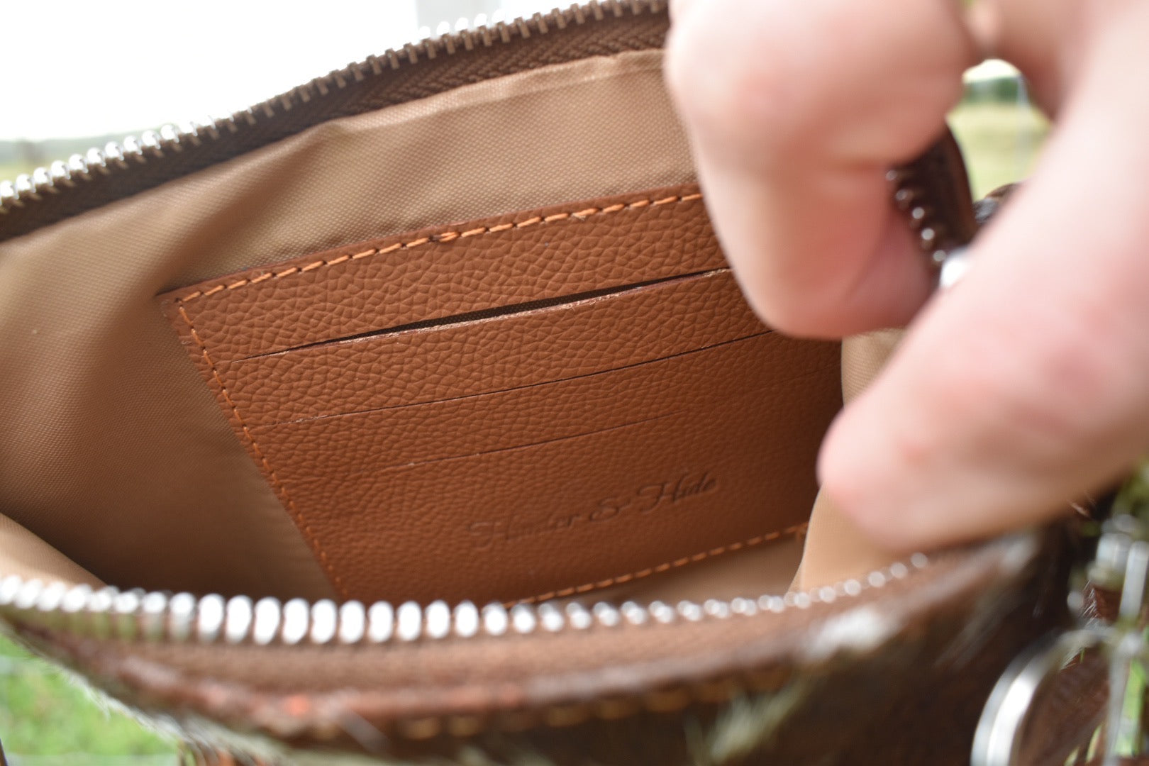 This small cowhide bag is perfect for your daylit dreams and nightfall fantasies! You'll be sure to make a style statement whether you hit the town at dusk or dawn!