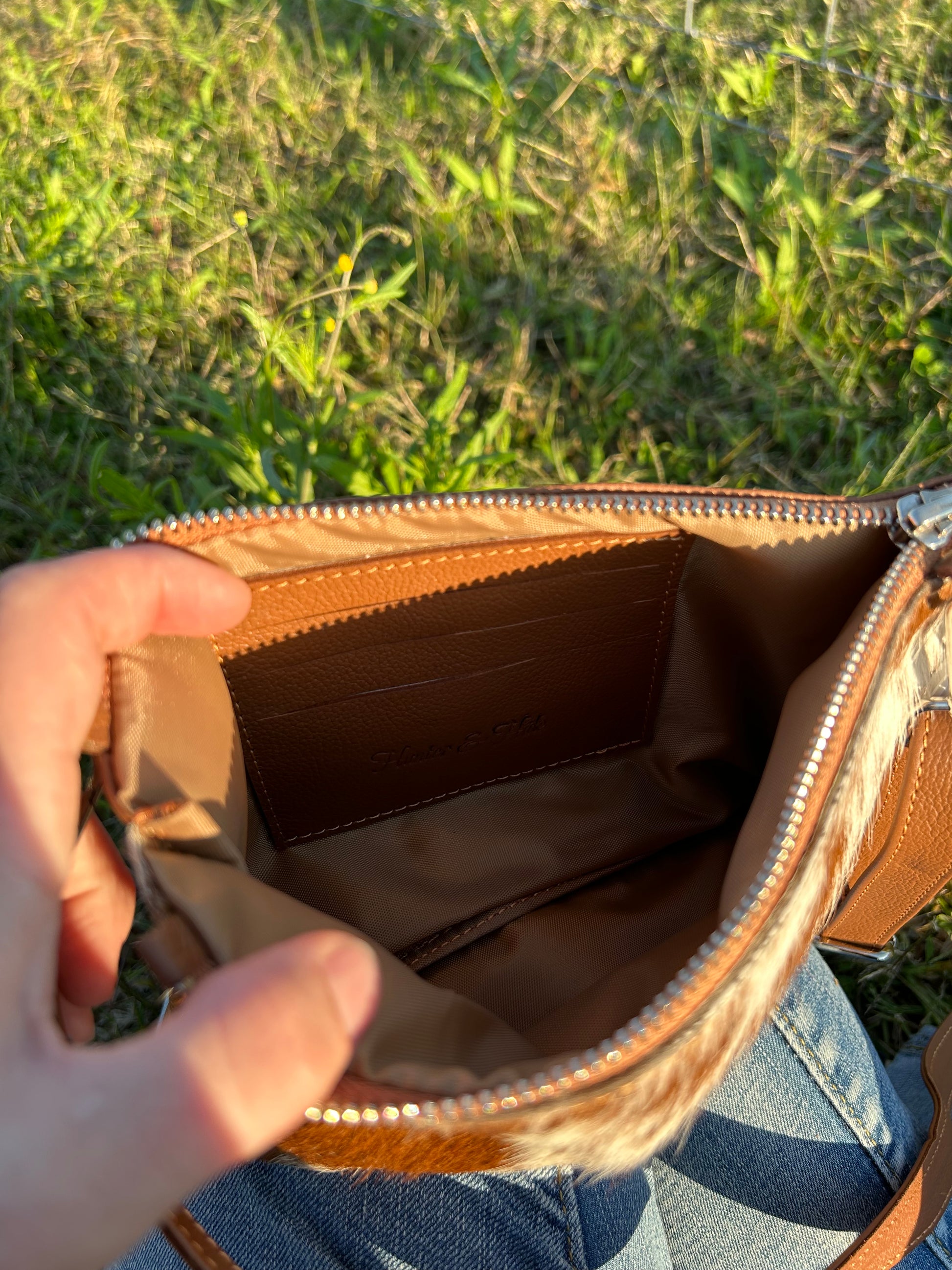 This small cowhide bag is perfect for your daylit dreams and nightfall fantasies! You'll be sure to make a style statement whether you hit the town at dusk or dawn!