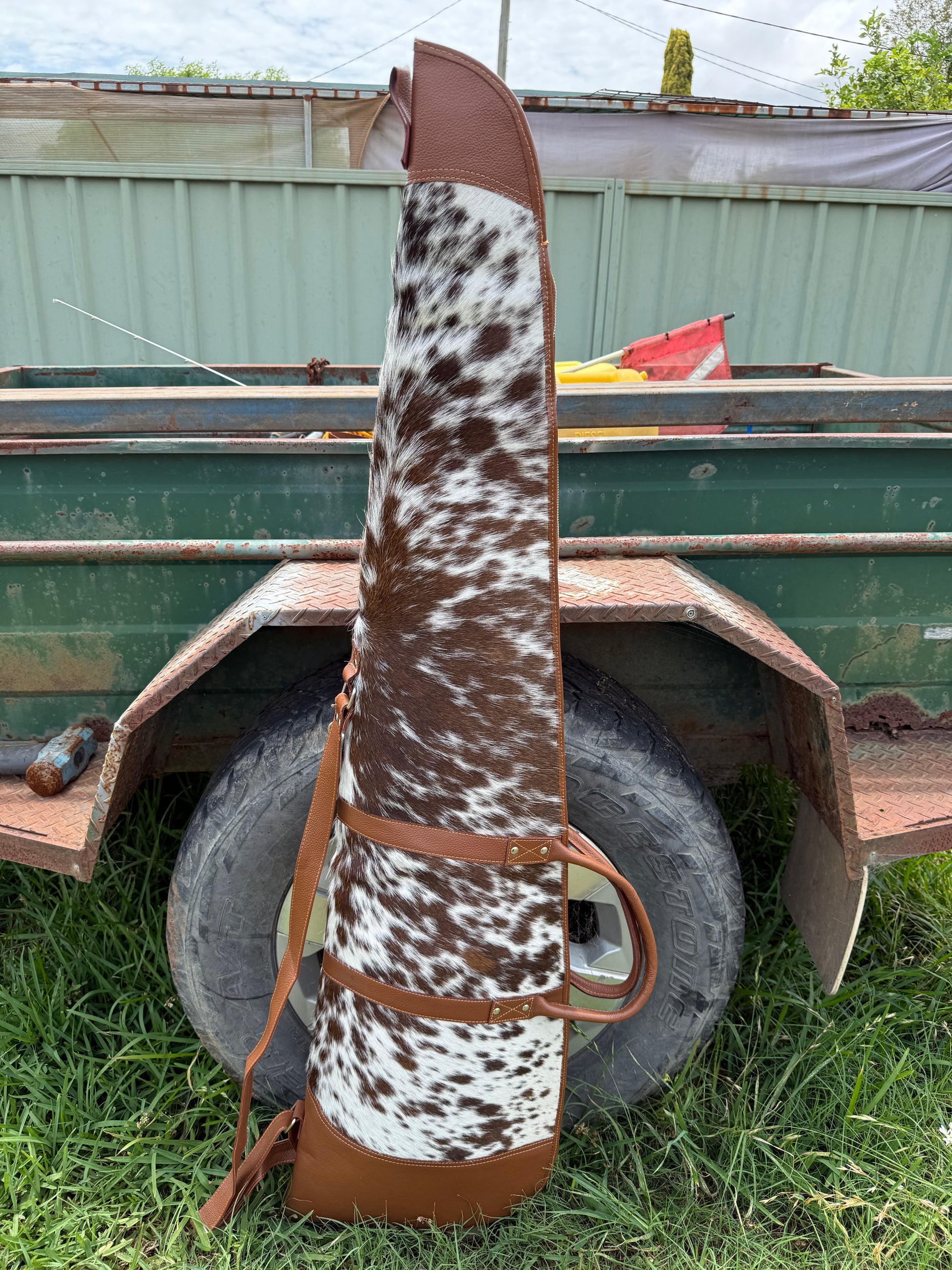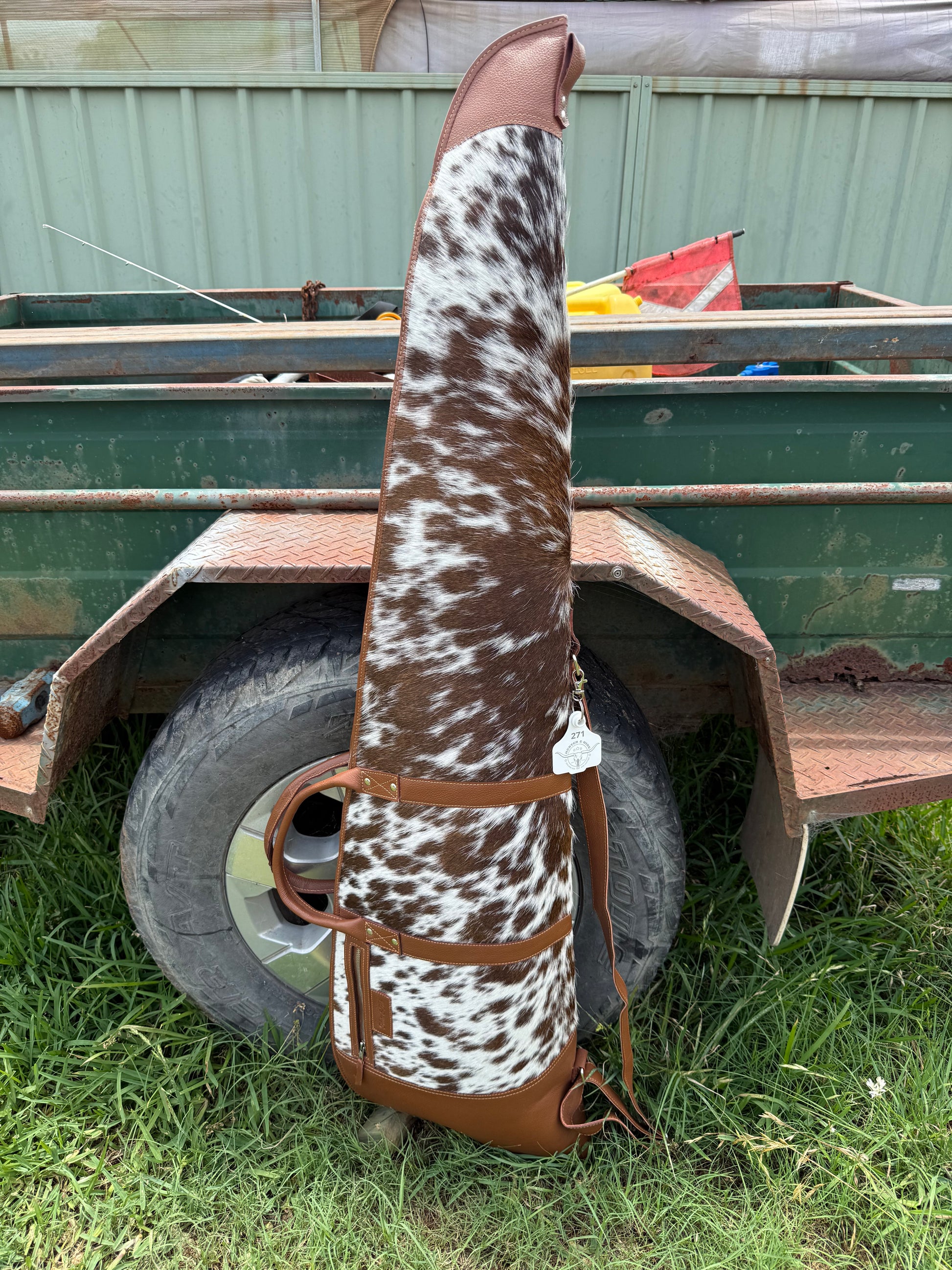 The perfect way to carry your hunting gear: the "Hunter" Rifle Bag! Made of genuine cowhide leather, this is a stylish rifle bag that won't let you down when you're out and about in the great outdoors. Keep your rifle safe, secure, and looking good!