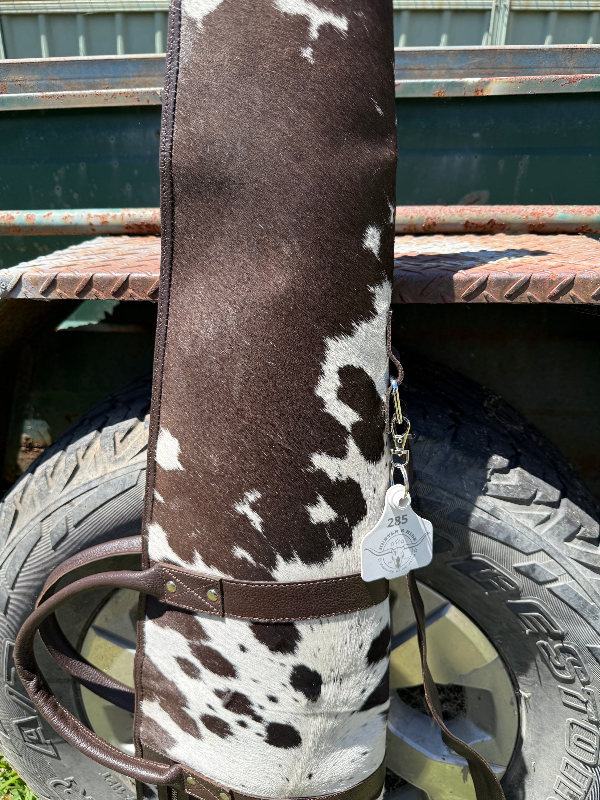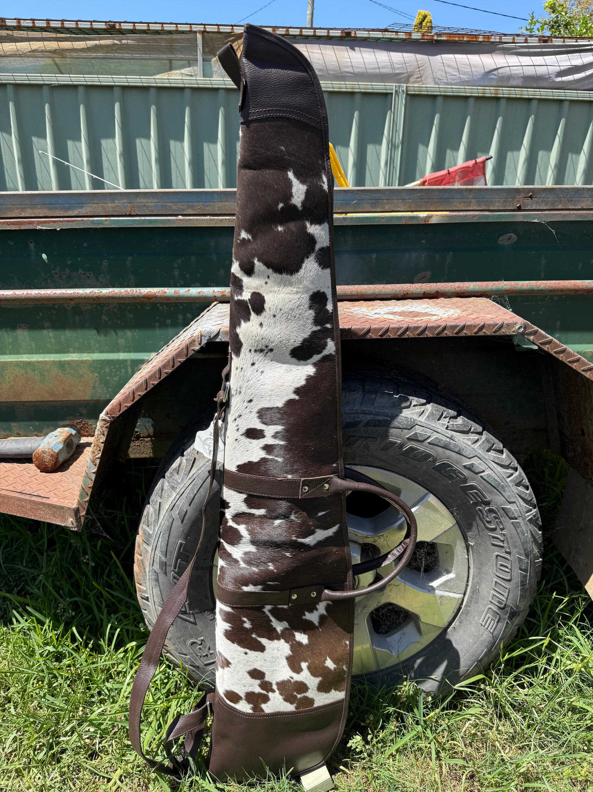 The perfect way to carry your hunting gear: the "Hunter" Rifle Bag! Made of genuine cowhide leather, this is a stylish rifle bag that won't let you down when you're out and about in the great outdoors. Keep your rifle safe, secure, and looking good!
